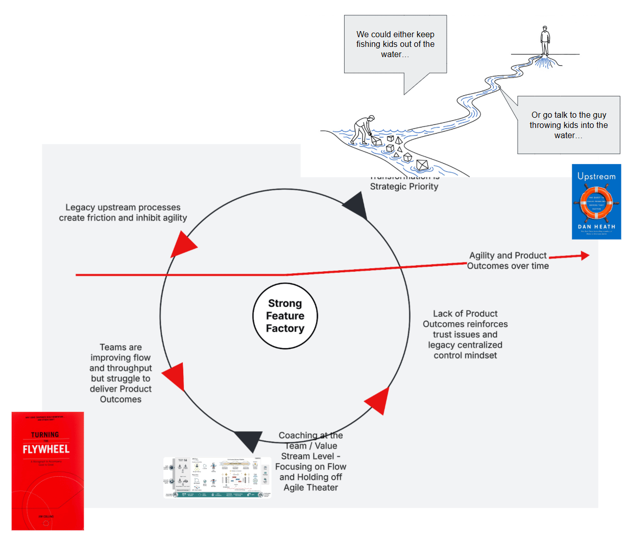 My key insight is that if you're looking for sustainable, impactful change, you need to stop fighting about processes in the trenches and go upstream to where the reality of the organization is shaped. This is my secret sauce for achieving 10x agility impact with the same energy and investments.